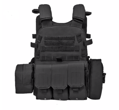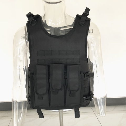 Chaleco táctico portador de placa negra Oxford para exteriores de nailon con bolsa táctica multifunción Chaleco de peso ligero ventilado